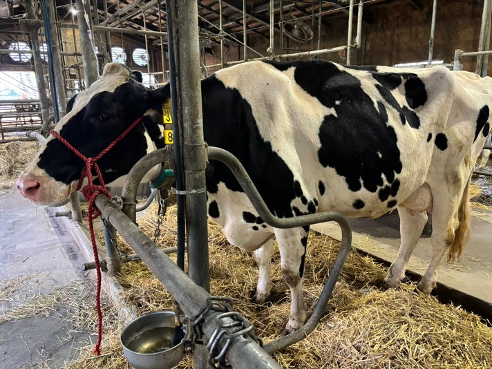 この牛は乾乳牛舎には戻さず、分娩までこのままつなぎ牛舎で様子を見ていくことになりました。