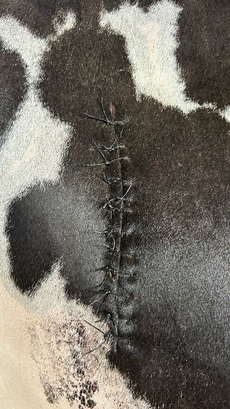特に大きなトラブルもなく、立位右膁部切開術にて四胃を整復・固定し閉腹しました。