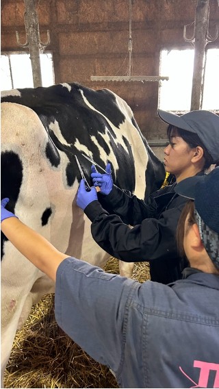 乳房炎、蹄病、繁殖障害治療など毎日診療がたくさんあり、とても充実した4日間でした。先生方がその都度私の知識レベルを確認しながらできることをやらせてもらう形で、手を動かす機会が多くあったため時間があっという間に過ぎました。