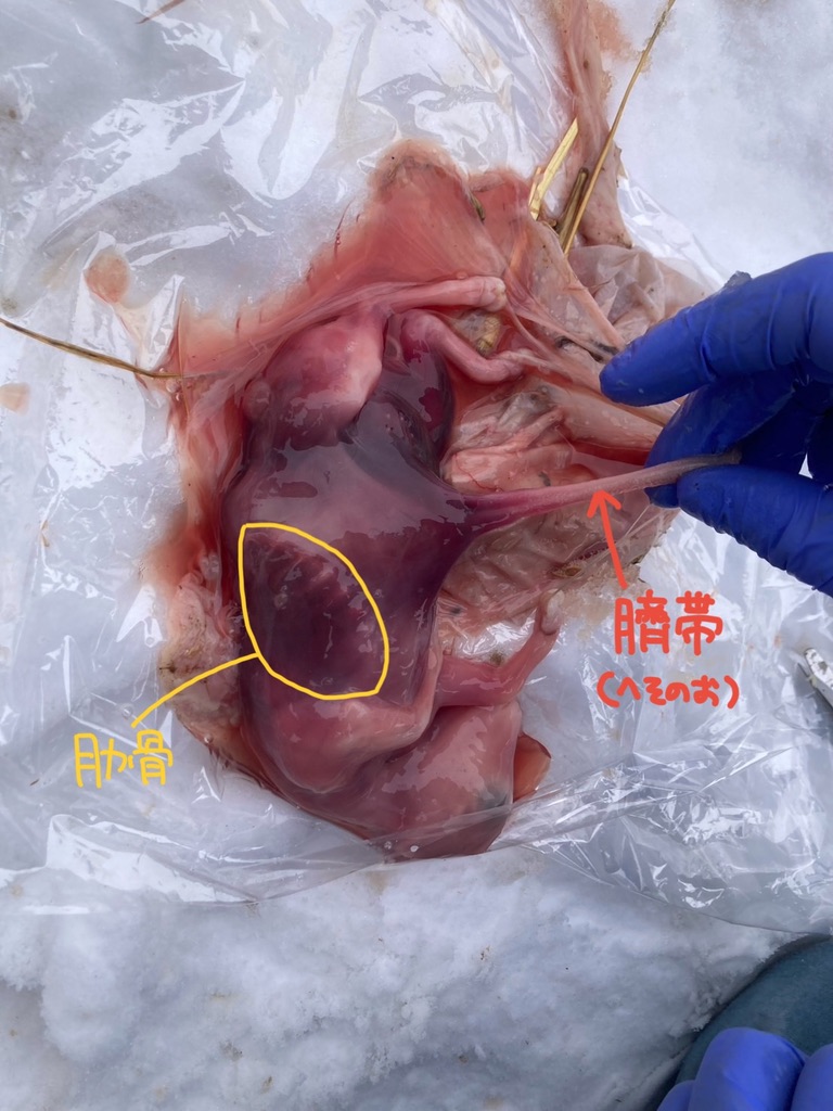位置的には確かに肝臓で、これ以外には肝臓らしいものが見当たらなかったのですが、写真の通り袋状の構造だったのです。