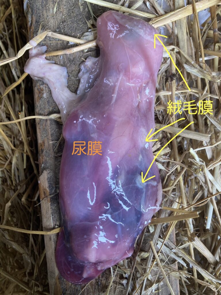 なんと、尿膜に包まれた胎子がつるんとそのまま綺麗に出てきました!