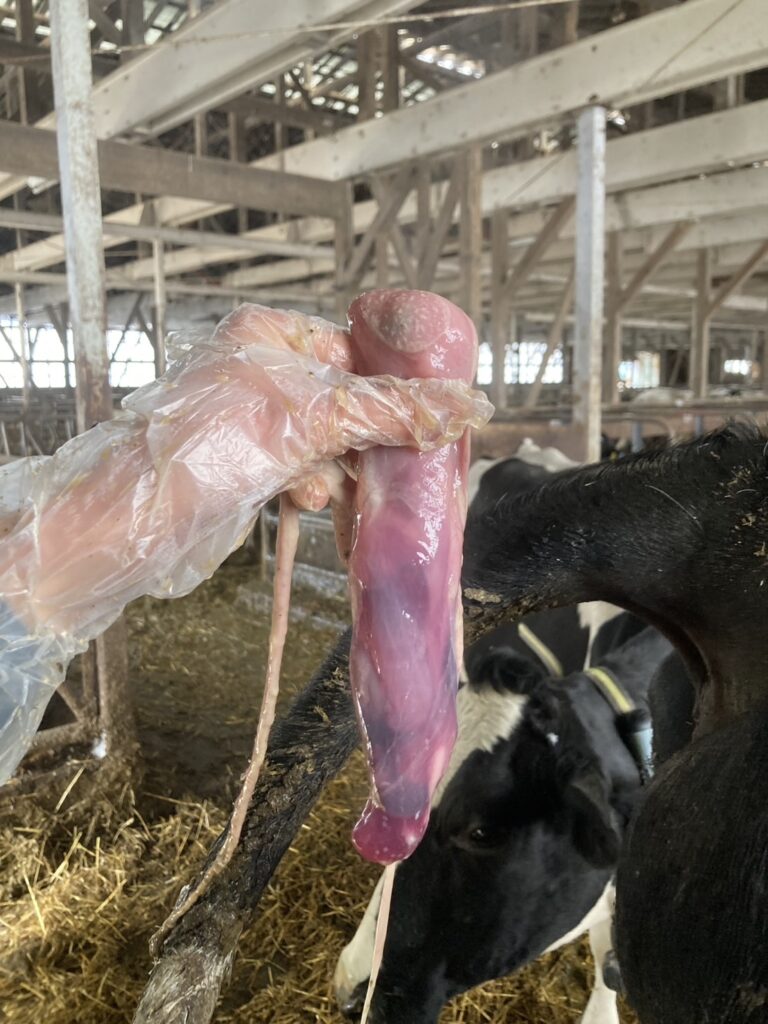 先日、「10/21に授精した牛が流産している。後産が出ている」との連絡を受けお伺いしました。