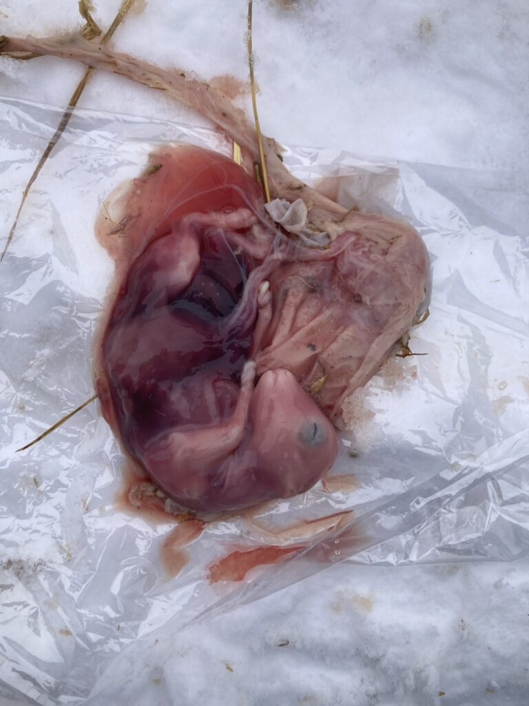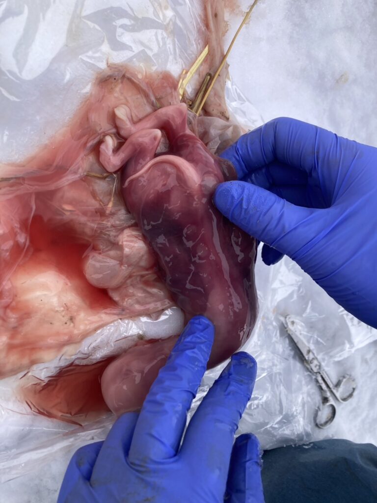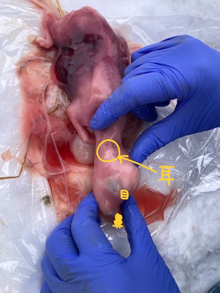 綺麗に胎子が出てきました!脚が4本出来上がっているのがわかります。ぷよぷよとしているので優しく扱っていきます。