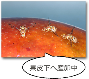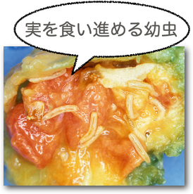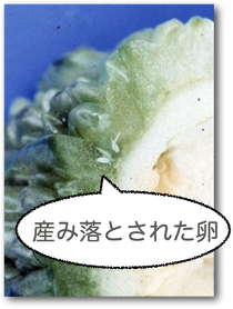 ハエ目ミバエ科に分類される、ウリ科の果実に寄生するハエです。雌は果皮下に産卵し、幼虫は果実内を食い進めて成長します。